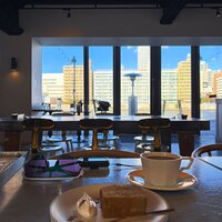 お店はホテルビル内にあるカフェで2階に位置している店内から堤防越しに隅田川を見られる高さがあり水上バスの往来を眺めることができるロケーション
