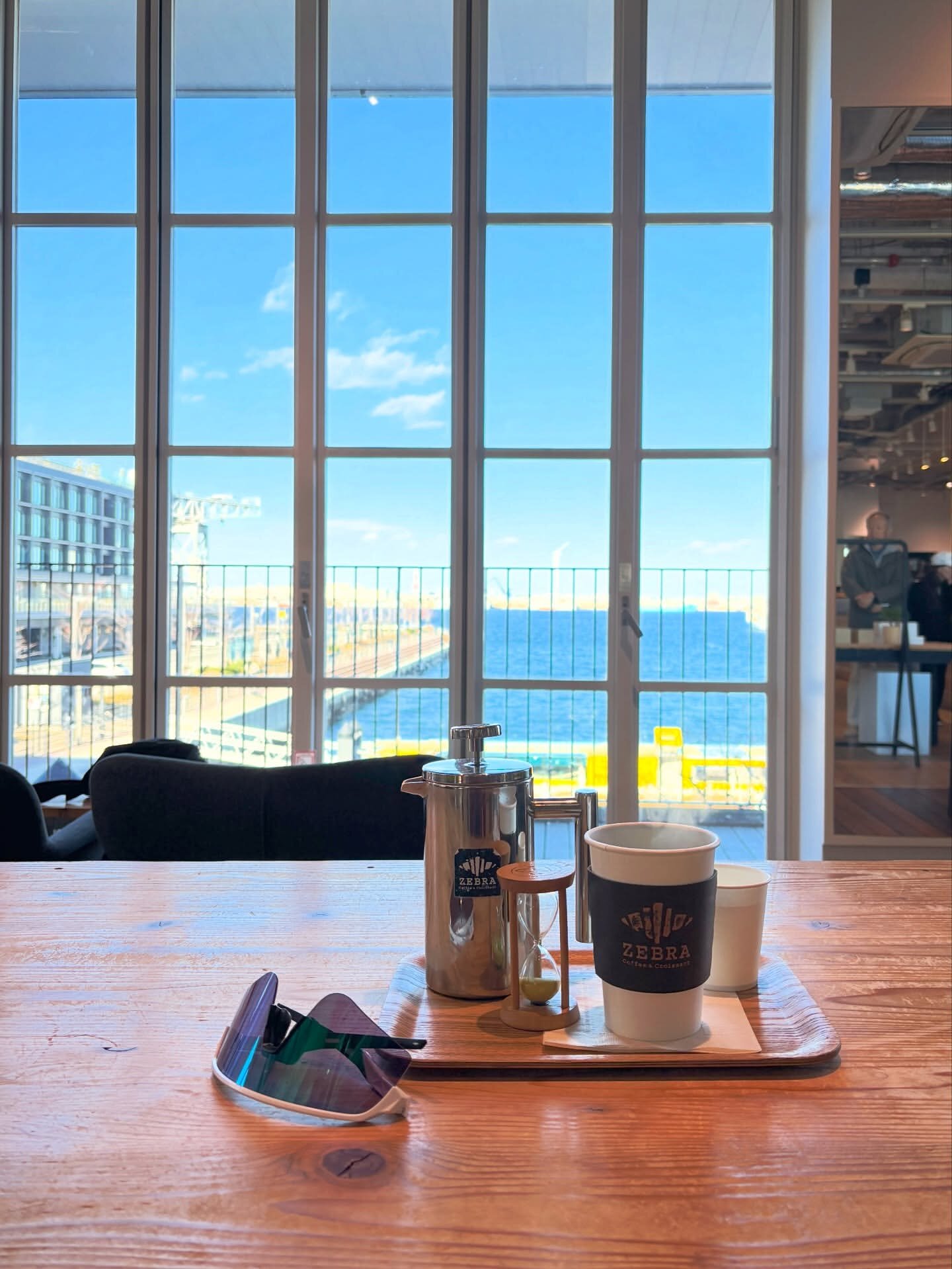 せっかく足止めたし磯子でコーヒータイムにしようかと思ったけどコンビニで飲むんだったらもうちょっと走ってみなとみらいのゼブラコーヒーに行くことに