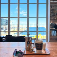 みなとみらいのゼブラコーヒーはハンマーヘッドが見渡せるこのあたりのテーブル席が好き